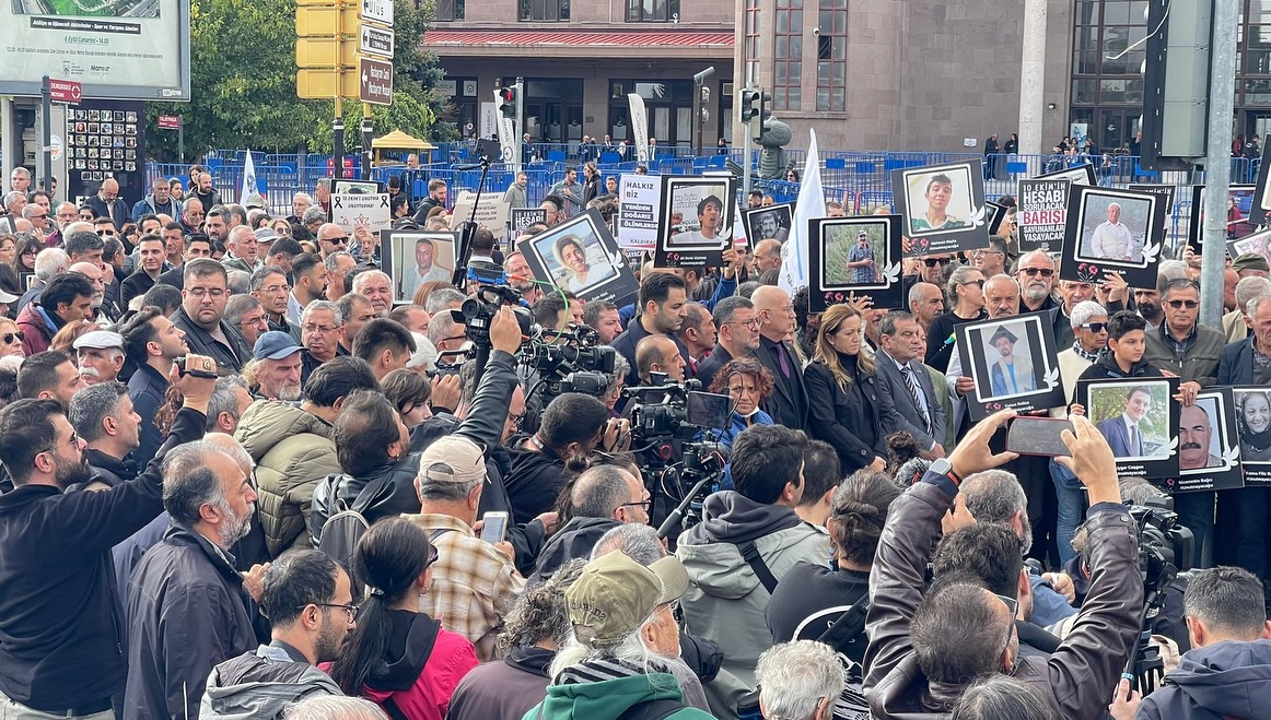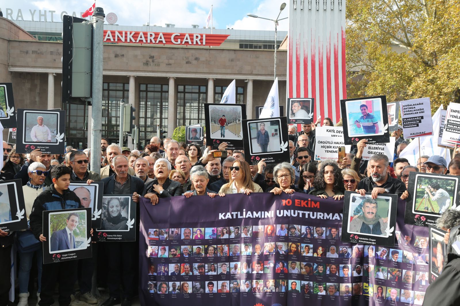 Ankara Garı önünde 10 Ekim 2015’te meydana gelen ve Türkiye tarihinin en büyük sivil katliamı olarak kayıtlara geçen IŞİD saldırısının 10. yıldönümünde hayatını kaybeden 104 kişi anıldı. 10 Ekim Barış Derneği öncülüğünde düzenlenen anma etkinliği, sabah saatlerinde katliamın gerçekleştiği alanda yapıldı.