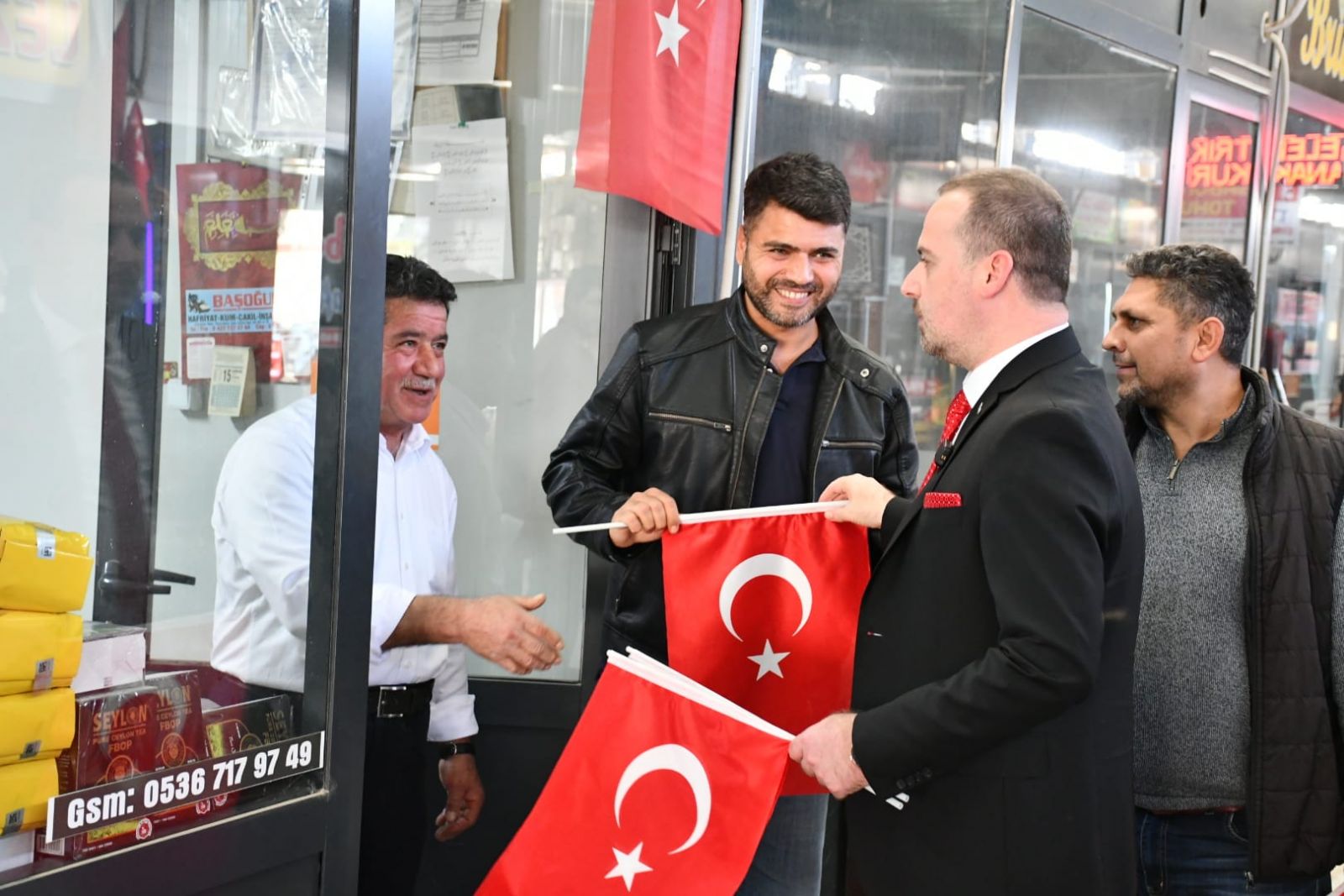 Büyükşehir Belediyesi yanında bulunan Geçici Ticaret Merkezi’ni de ziyaret eden Karademir ve gaziler, burada esnaflara bayrak hediye etti. Esnaflarla sohbet eden Karademir, Cumhuriyet’in anlamına vurgu yaparak birlik ve beraberlik mesajı verdi.