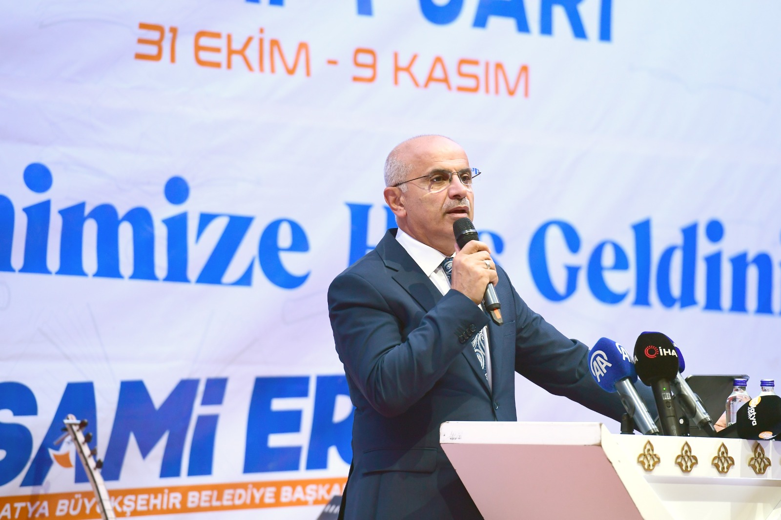 Saygı duruşu, İstiklal Marşı ve müzik dinletisinin ardından kitap fuarı açılış konuşmasını yapanMalatya Büyükşehir Belediye Başkanı Sami Er, "Malatya'mızın kültürel hayatına yön veren, en kıymetli buluşmalardan biri olan 11'inci Malatya Anadolu Kitap ve Kültür Fuarı'nda bir arada olmanın heyecanını yaşıyoruz. Malatya'mız 6 Şubat depremleriyle zor bir süreç yaşadı. Malatya'mızı adım adım yeniden ayağa kaldırıyoruz. Bu depremde canlarımızı, evlerimizi, iş yerlerimizi yitirdik ama umutlarımızı hiçbir zaman yitirmedik. Umutsuzluğa düşen insanlarımızın umutları olmaya çalıştık. Allah devlete zeval vermesin. Hakikaten hiçbir ülkenin altından kalkamayacağı operasyonel anlamda büyük bir görev ifa ediliyor. Cumhurbaşkanımız Sayın Recep Tayyip Erdoğan'ın güçlü liderliğinde, bakanlarımızın çok güçlü destekleri ve yerelde de özellikle Sayın Valimizle Malatya'mız için kader birliği yaptık. Aynı zamanda vekillerimiz, siyasilerimiz, kamu kurum ve kuruluşları ile birlik ve beraberlik içerisinde bir sinerji oluşturarak Malatya'mızı ayağa kaldırıyoruz. Şehrin her tarafı şantiye. 1200 lokasyonda şantiye, inşaat var. Allah'a şükürler olsun Malatya'mız toparlanıyor. Kesinlikle eskisinden çok daha iyi olacağını biliyoruz. Malatya'nın her noktasında büyük bir inşa süreci var. Altyapıdan yollara, kanalizasyondan içme suyuna kadar neredeyse bütün sistemi yeniliyoruz. Her mahallemiz, her caddemiz adeta bir şantiye halinde ama biz biliyoruz ki şehir yalnızca binalarla değil insanıyla, fikriyle, kültürüyle yeniden kurulur. Bu yüzden biz imarın yanında ihyayı da altyapının yanında unutmadık. Kültür ve fiziksel kalkınmanın yanında, fikri kalkınmayı da önemsiyoruz. Çünkü bir şehri inşa etmek aynı zamanda bir nesli inşa etmektir. Gençlerimize, çocuklarımıza, kadınlarımıza bir enerji ve motivasyon verecek işleri önemsiyoruz” dedi.