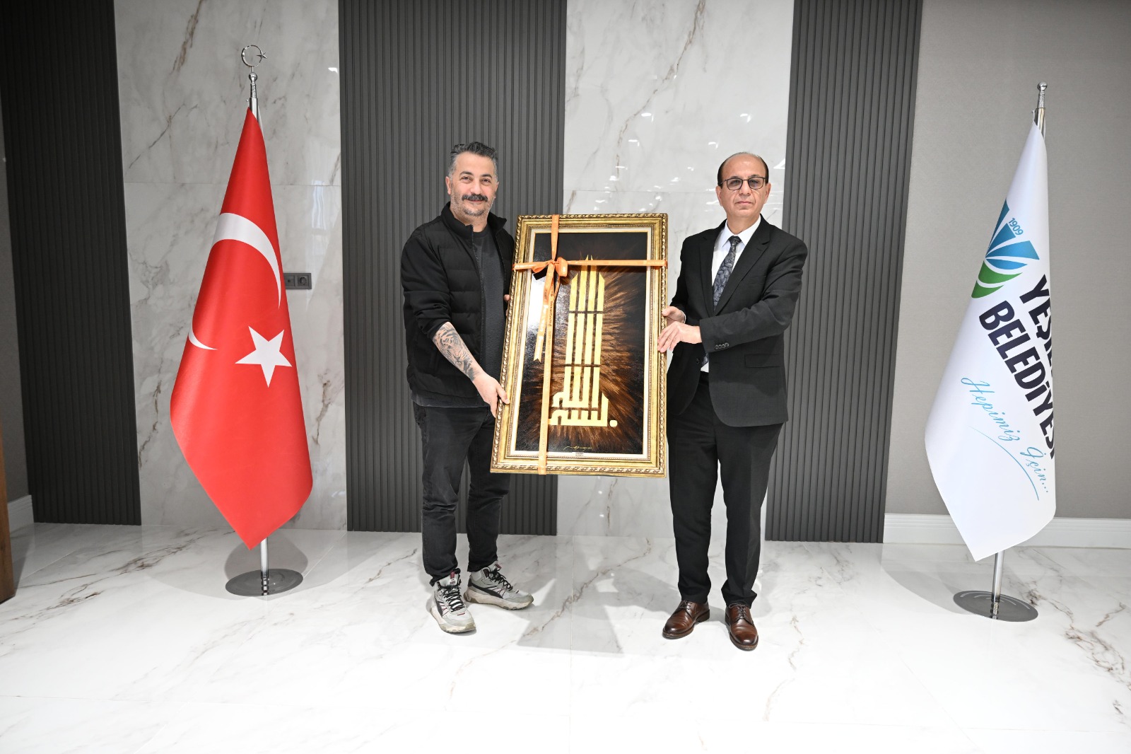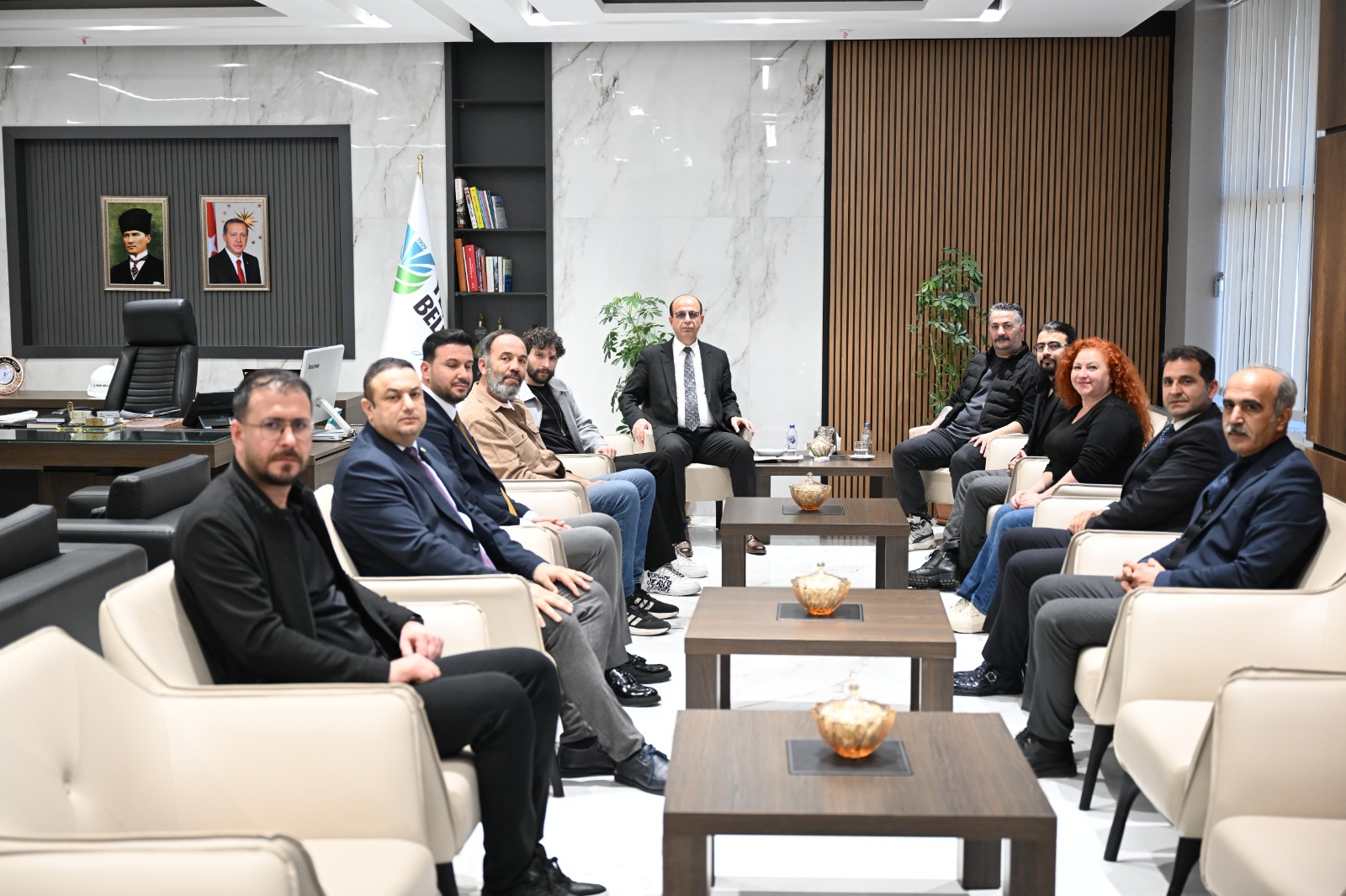 Ödül törenine katılmak amacıyla Malatya’ya gelen Yönetmen Ahmet Kapucu ve Abdullah Harun İlhan ile sanatçılar Bora Cengiz, Seher Terzi ve Ömer Duran, Yeşilyurt Belediye Başkanı Prof. Dr. İlhan Geçit’i ziyaret ederek, sanata verdiği desteklerden dolayı teşekkürlerini sundular.