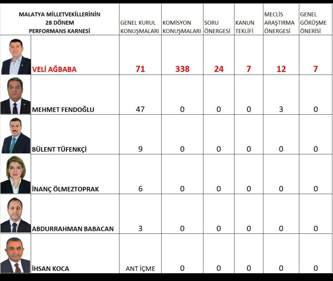 Ağbaba’nın yüksek konuşma sayısı, Meclis çalışmalarına aktif katılımı ve Malatya’nın yerel sorunlarını ulusal gündeme taşıma çabası olarak değerlendiriliyor.