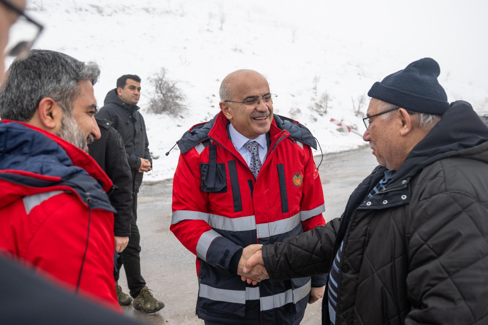 Malatya Büyükşehir Belediye Başkanı Sami Er, kentte etkili olan kar yağışı sonrası TOKİ Karagöz'de ekiplerin çalışmalarını yerinde inceledi.