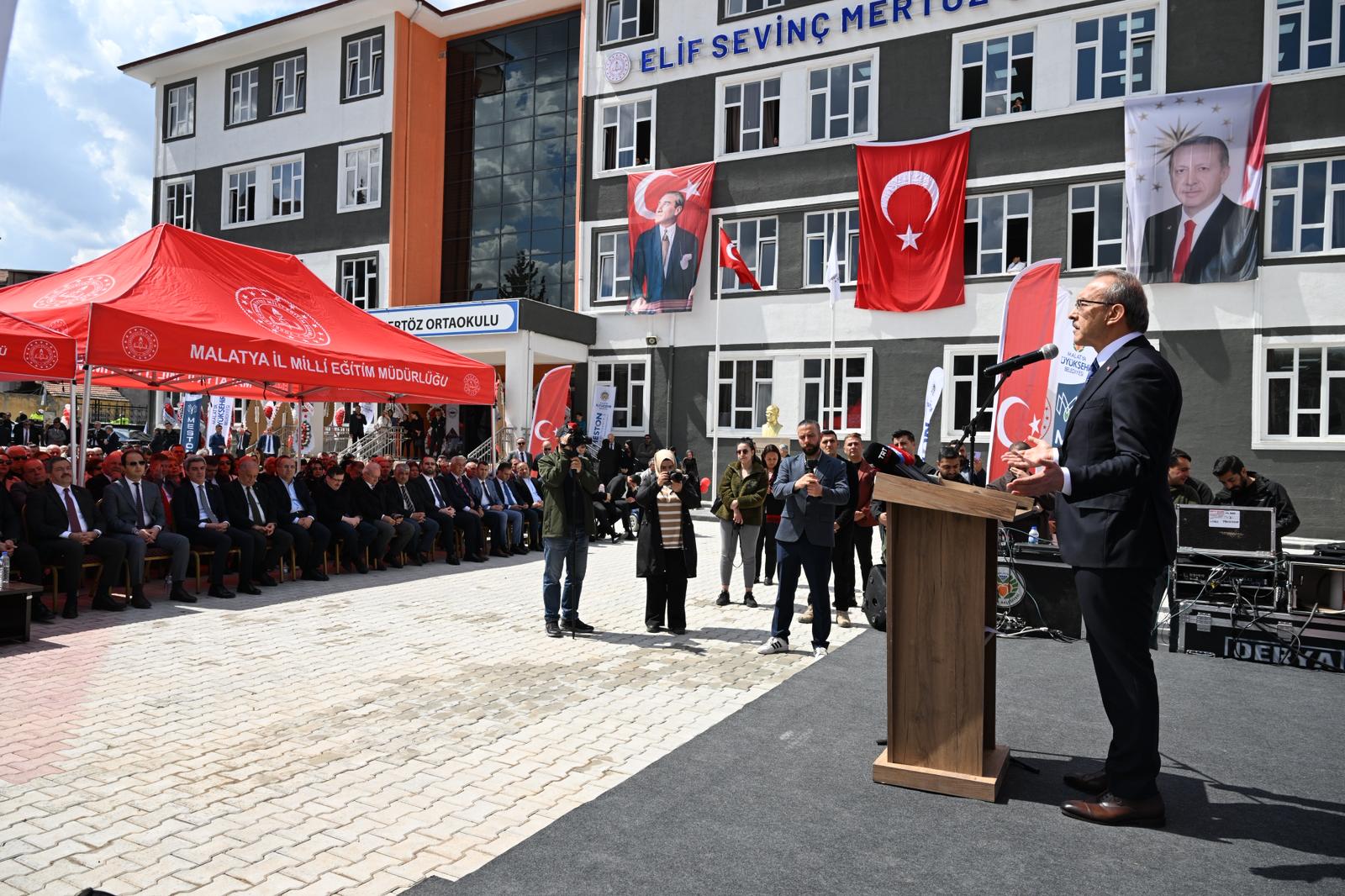 Malatya’da eğitime yapılan yatırımlar kapsamında, hayırsever iş insanı Rıdvan Mertöz tarafından yapımı üstlenilen Elif Sevinç Mertöz Ortaokulu’nun açılış töreni gerçekleştirildi.