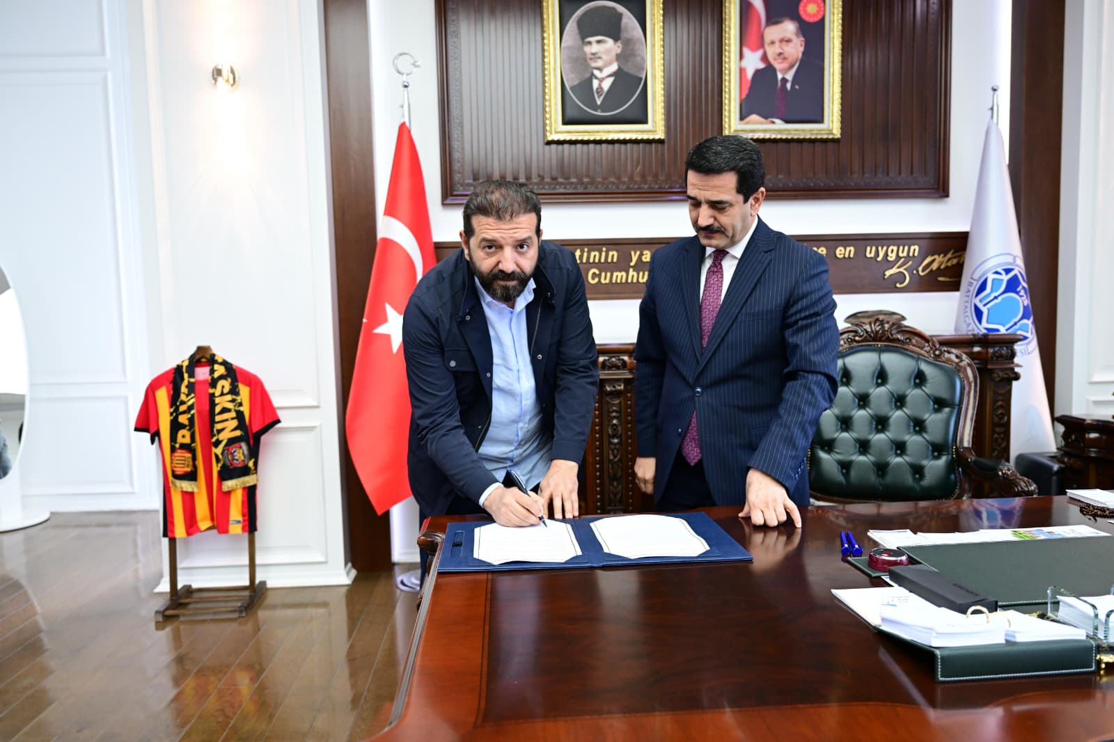 Battalgazi Belediyesi, ilçede sosyal dayanışma alanlarını artırmaya yönelik yatırımlarını sürdürüyor. Belediye Başkanı Bayram Taşkın’ın seçim vaatleri arasında yer alan taziye evi projeleri kapsamında, Mustafapaşa Mahallesi’nde inşa edilecek yeni taziye evinin, Şıkşık, Aslanbey ve Hacıabdi mahallelerine de hizmet vermesi planlanıyor. Bu doğrultuda Battalgazi Belediyesi Hizmet Binası’nda gerçekleştirilen imza töreninde protokol, Battalgazi Belediye Başkanı Bayram Taşkın ile hayırsever Dr.Gökhan Kalı tarafından imza altına alındı.