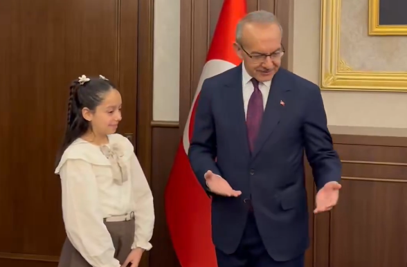 23 Nisan Ulusal Egemenlik Ve Çocuk Bayramı kutlamaları kapsamında geleneksel koltuk devri töreninde Malatya Valisi Seddar Yavuz makamını Mehmet Akif Ortaokulu öğrencisi Yağmur Çiloğlu’na devretti.